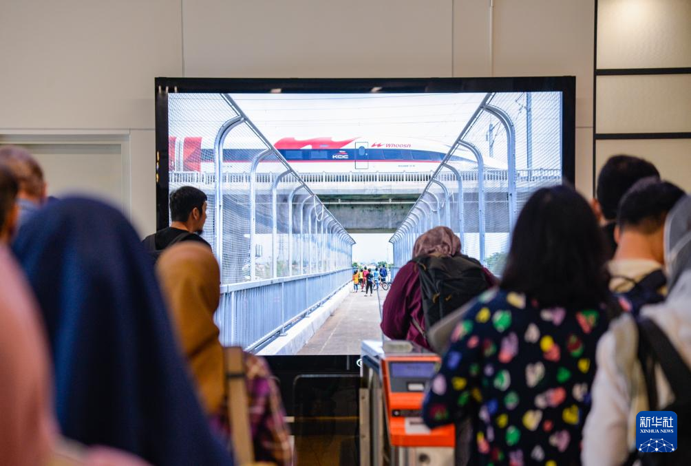 2月17日,在印度尼西亚雅加达,乘客在雅万高铁哈利姆站排队前往站台。