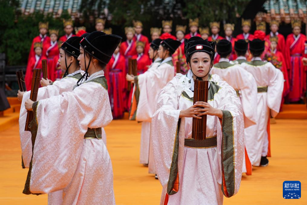 9月28日,在2025乙巳年公祭孔子大典上,演职人员表演乐舞。