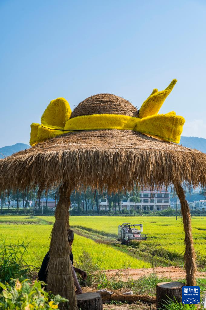 10月11日,湖南省娄底市双峰县荷叶镇清泉村农民驾驶收割机收获晚稻。