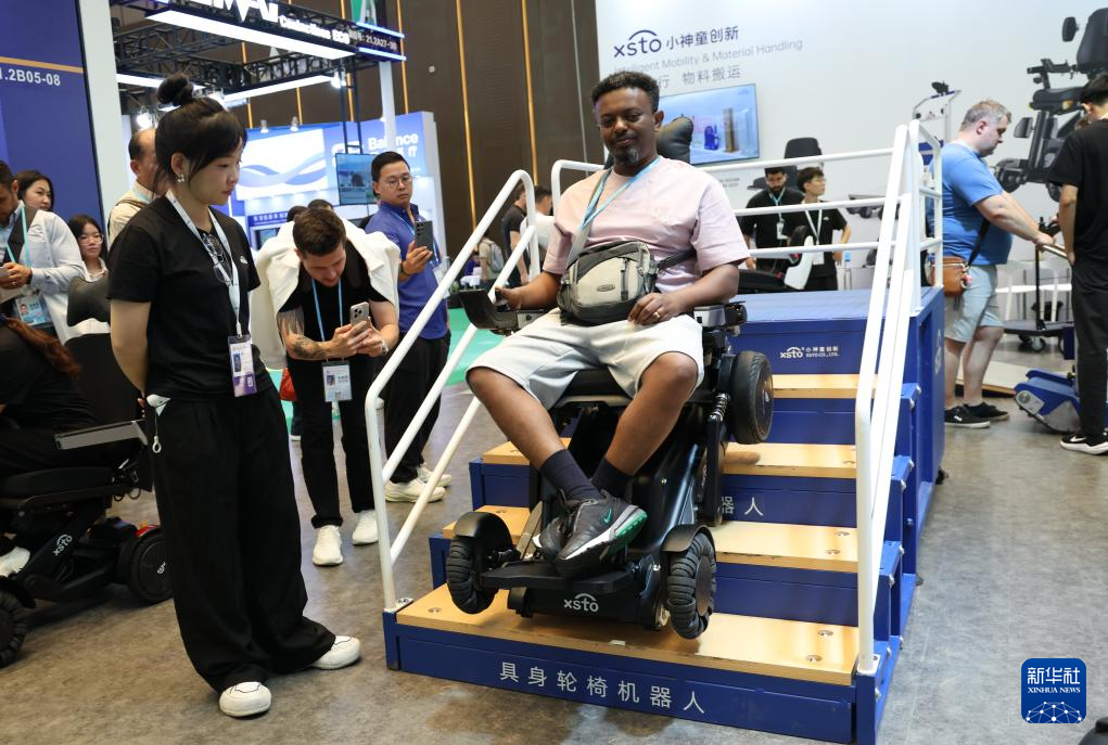 10月31日,客商在广交会智慧医疗专区体验一款轮椅机器人。